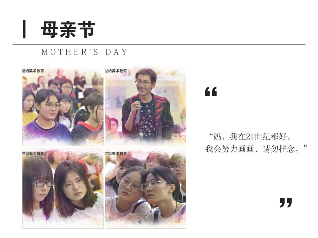 我们是美术生、艺考生,注定要离家远行;我们心怀梦想、年轻要闯,注定不能时刻陪在母亲身边;有妈的孩子像块宝,母爱化作我们的翅膀,让我们能够搏击长空。
